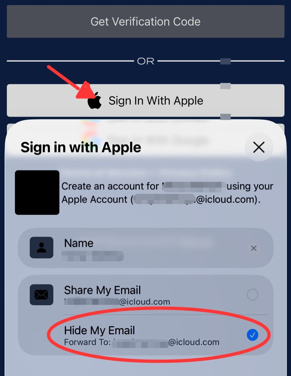 When you use the "Sign in with Apple" option and choose to "Hide My Email," Apple generates a unique, private email address for your account that typically ends with @privaterelay.appleid.com.